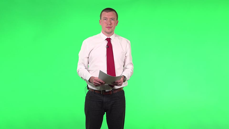 Filmed in two sections on a greenscreen, I had a change of costume to differentiate between Newsreader Paul and Correspondent Paul, and used different focal lengths and lighting colour to make it look like I was outside at the Liverpool Waterfront in the early evening before sunset!